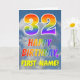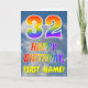 Esta design de 32 anos de saudação divertida e colorida apresenta uma representação de um céu azul com nuvens, juntamente com um grande número "32" e a mensagem "FELIZ BIRTHDAY", tendo um espectro de gradiente inspirado no arco-íris, colorir o padrão de gradiente, na frente. A frente também apresenta um nome de destinatário personalizado. O dentro apresenta uma mensagem de saudação de aniversário editável, ou talvez pudesse ser apagado e deixado o vazio se uma mensagem fosse escrita manualmente. Um cartão de aniversário personalizado como este pode ser uma maneira divertida de enviar desejos de aniversário a alguém que comemora seus trinta e dois anos. [~Z0000371]