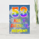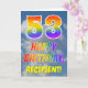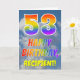 Esta divertida e colorida design de saudação de 53 anos apresenta uma representação de um céu azul com nuvens, juntamente com um grande número "53" e a mensagem "FELIZ BIRTHDAY", ter um espectro de gradiente inspirado no arco-íris para colorir padrões de gradiente, na frente. A frente também apresenta um nome de destinatário personalizado. O dentro apresenta uma mensagem de saudação de aniversário editável, ou talvez pudesse ser apagado e deixado o vazio se uma mensagem fosse escrita manualmente. Um cartão de aniversário personalizado como este pode ser uma maneira divertida de enviar uma mensagem em comemoração dos cinquenta e três anos de alguém. [~Z0000371]