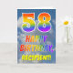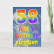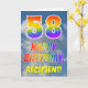 Esta divertida e colorida design de saudação de 58 anos apresenta uma representação de um céu azul nublado, juntamente com um grande número "58" e a mensagem "FELIZ BIRTHDAY", tendo um espectro de gradiente inspirado na cor do padrão de gradiente, na frente. A frente também apresenta o nome editável do destinatário do cartão. O dentro apresenta uma mensagem de saudação de aniversário editável, ou talvez pudesse ser apagado e deixado o vazio se uma mensagem fosse escrita manualmente. Um cartão de aniversário personalizado como este pode ser uma maneira divertida de enviar desejos de aniversário a alguém que comemora seus cinquenta e oito anos. [~Z0000371]