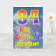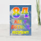 Esta divertida e colorida design de 84.º aniversário apresenta uma representação de um céu azul turvo, juntamente com um grande número "84" e a mensagem "FELIZ BIRTHDAY", tendo um espectro do arco-íris inspirado na coloração do padrão de gradiente, na frente. A frente também apresenta um nome de destinatário personalizado. O dentro apresenta uma mensagem de saudação de aniversário editável, ou talvez pudesse ser apagado e deixado o vazio se uma mensagem fosse escrita manualmente. Um cartão de aniversário personalizável como este pode ser uma maneira divertida de reconhecer o oitenta e quarto aniversário de alguém. [~Z0000371]