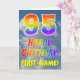 Esta divertida e colorida design de 95 anos de saudação de aniversário apresenta uma representação de um céu azul nublado, juntamente com um grande número "95" e a mensagem "FELIZ BIRTHDAY", tendo um espectro de arco-íris inspirado na coloração do padrão de gradiente, na frente. A frente também apresenta o nome personalizado do destinatário do cartão. O dentro apresenta uma mensagem de saudação de aniversário personalizada, ou talvez possa ser apagado e deixado o vazio se uma mensagem for escrita manualmente. Um cartão de aniversário personalizado como este pode ser uma maneira divertida de enviar desejos de aniversário a alguém que está comemorando seu 90º aniversário. [~Z0000371]