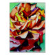 do design de pintura de aquarela original do artista Sacha Grossel, de rosa mulit colorido "Sunset alpino", em grande foco. Os destaques laranja, amarelo e marrom deste belo rosa e efeitos brilhantes e coloridos do design floral contra um legal fundo verde dão a impressão de um pôr do sol feroz a esta maravilha botânica.