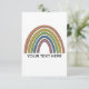 Cartão de saudação personalizado. Arco-íris com estilo cartoon bonito com textura de papel e efeito biselado. Tudo o que se vê é impresso, não será usado nenhum relevo real no fazer desses produtos. Excelente para adultos e crianças. Editar texto para personalização. Vazio atrás para mensagens escritas à mão.