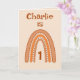 Este doce design do arco-íris pode ser personalizado com Nome e Idade. Bonito cor Peach, Laranja e creme. O dentro verso pode ser mantido, alterado ou removido seguindo o prompt 'personalize'.