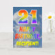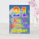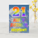 Esta design de aniversário de 21 anos de saudação divertida e colorida apresenta uma representação de um céu azul turvo, juntamente com um grande número "21" e a mensagem "FELIZ BIRTHDAY", tendo um espectro do arco-íris inspirado na coloração do padrão de gradiente, na frente. A frente também apresenta o nome personalizado do destinatário do cartão. O dentro apresenta uma mensagem de saudação de aniversário editável, ou talvez pudesse ser apagado e deixado o vazio se uma mensagem fosse escrita manualmente. Um cartão de aniversário personalizável como este pode ser uma maneira divertida de reconhecer o vigésimo primeiro aniversário de alguém. [~Z0000371]