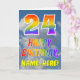 Esta design de saudação de 24 anos, divertida e colorida, apresenta uma representação de um céu azul com nuvens, juntamente com um grande número "24" e a mensagem "FELIZ BIRTHDAY", ter um espectro de gradiente inspirado no arco-íris para colorir padrões de gradiente, na frente. A frente também apresenta um nome de destinatário personalizável. O dentro apresenta uma mensagem de saudação de aniversário editável, ou talvez pudesse ser apagado e deixado o vazio se uma mensagem fosse escrita manualmente. Um cartão de aniversário personalizável como este pode ser uma maneira divertida de enviar uma mensagem para celebrar o vigésimo quarto aniversário de alguém. [~Z0000371]