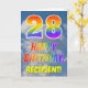 Esta divertida e colorida design de saudação de 28 anos apresenta uma representação de um céu azul nublado, juntamente com um grande número "28" e a mensagem "FELIZ BIRTHDAY", ter um espectro de gradiente inspirado no arco-íris para colorir padrões de gradiente, na frente. A frente também apresenta um nome de destinatário personalizado. O dentro apresenta uma mensagem de saudação de aniversário personalizada, ou talvez possa ser apagado e deixado o vazio se uma mensagem for escrita manualmente. Um cartão de aniversário personalizável como este pode ser uma maneira divertida de enviar desejos de aniversário a alguém que comemora seu vigésimo oitavo aniversário. [~Z0000371]