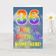 Este divertido e colorido cartão de 36 anos apresenta uma representação de um céu azul nublado, juntamente com um grande número "36" e a mensagem "HAPPY BIRTHDAY", tendo um espectro de gradiente inspirado na cor do padrão de gradiente, na frente. A frente também apresenta um nome de destinatário personalizado. O dentro apresenta uma mensagem de saudação de aniversário personalizada, ou talvez possa ser apagado e deixado vazio se uma mensagem for escrita manualmente. Um cartão de aniversário personalizado como este pode ser uma maneira divertida de enviar desejos de aniversário a alguém que comemora seus trinta e seis anos. [~Z0000371]