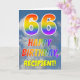Esta divertida e colorida design de saudação de 66 anos apresenta uma representação de um céu azul nublado, juntamente com um grande número "66" e a mensagem "FELIZ BIRTHDAY", ter um espectro de gradiente inspirado no arco-íris para colorir padrões de gradiente, na frente. A frente também apresenta o nome personalizado do destinatário do cartão. O dentro apresenta uma mensagem de saudação de aniversário personalizada, ou talvez possa ser apagado e deixado o vazio se uma mensagem for escrita manualmente. Um cartão de aniversário personalizável como este pode ser uma maneira divertida de enviar uma mensagem para celebrar o sexagésimo sexto aniversário de alguém. [~Z0000371]