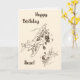 Bicarros de vintagem feitos à mão com Feliz Aniversário + texto de nome, colocados sobre um fundo de creme sólido. Este é um padrão transparente. Você pode alterar a cor de fundo, o tamanho e a posição das imagens e personalizar o texto. Esta design corresponde à coleção de aviões da Arte Deco.