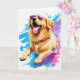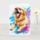 Um adorável Golden Retriever usando óculos de sol faz um cartão muito fofo para aniversários, aniversários de casamento, bilhetes de agradecimento, etc. Em branco por dentro para escrever seu próprio recado pessoal.