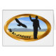 Um medalhão de ouro em forma de oval com a silhueta de um falcoer e seu pássaro com as palavras A Arte de Falconry abaixo.