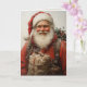 Essa imagem retrata um Papai Noel alegre, estilizado de forma clássica e realista, que lembra a obra de Norman Rockwell. Os papais noeis estão vestidos com uma roupa vermelha tradicional com um chapéu revestido de pele, com a face emoldurada por uma barba branca grossa e de pó de neve. Ele veste um sorriso quente que transmite gentileza e alegria. Uma mochila rústica cheia de presentes é colocada sobre o ombro, e o fundo inclui verde festivo e sagrado, acrescentando ao espírito natalício. A imagem captura o calor e a magia da época de férias.