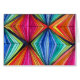 Ilustração de arte gráfica colorida e brilhante com arte de padrão geométrico desenhada à mão em esquema de cores vibrantes e brilhantes de arco-íris psicodélico em diamante. Este design foi desenhado e colorido à mão pela artista visual Sacha Grossel e foi inspirado pelos movimentos de arte pop e arte óptica dos anos 60.