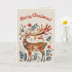 Este belo cartão apresenta uma ilustração de um cervo de arte popular com uma mensagem editável acima dele. No interior há uma mensagem editável. Você pode usar isto como um cartão de Natal, cartão de aniversário ou como um cartão para qualquer ocasião. Você pode alterar a mensagem ou excluí-la para criar um cartão em branco. Você também pode alterar as cores do fundo no interior e no verso. Crédito da arte: Lynda McDaniel-Smith, 2024.