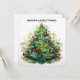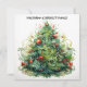 Cartão de árvore de Natal em estilo aquoso e ornamentos vermelhos