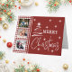 Placa de Árvore de Natal Simplista Branca. Muito brilhante para as festas com estas belas estrelas brilhantes que rodeiam o guião Feliz Natal e uma delicada árvore esperta que descansa ao longo do lado. Use suas fotos da família favorita para preencher os espaços de fotos fornecidos juntamente com a adição da saudação que você gostaria e os seus nomes no último espaço.