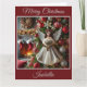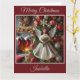 Um belo anjo adornou uma elegante árvore vermelha, prateada e dourada de Natal em frente a uma lareira quente neste encantador cartão de Natal. Adicione seu próprio texto personalizado.