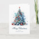 Uma árvore de Natal com estilo aquoso doce, com ornamentos vermelhos e azuis, é deliciosamente festiva ao lado de um tipo elegante neste clássico cartão de cartões de natal dobrado que é vazio por ampla sala para escrever uma mensagem pessoal de alegria de feriado.