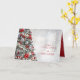 Uma árvore de Natal maravilhosamente decorada apresenta uma saudação na frente e sua personalização e nomes na dentro.