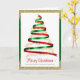 Este cartão de Natal corporativo apresenta árvore de Natal em fita vermelha e verde com destaque em brilho dourado. Texto "Feliz Natal" e personalizado com o nome da sua empresa. No interior, apresenta mensagem personalizada e o logotipo da sua empresa. Perfeito para enviar votos de boas festas para clientes, funcionários e todos na sua lista.