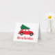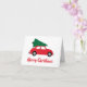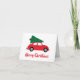 Com o pequeno carro vermelho trazendo para casa a árvore de Natal, esses cartões retrô adoráveis são perfeitos para esta época de festas. Você pode facilmente alterar a cor do fundo ou do texto usando o editor.