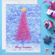 Este Cartão de Férias é para aqueles que preferem um design não tradicional. Este design apresenta uma Árvore de Natal rosa brilhante e roxa no estilo de grafite de bloco. A árvore com estrela amarela está em frente a uma parede urbana azul-gelo. O cheio do estilo abstrato da expressão e do movimento. Um bom humor para um feriado de inverno.