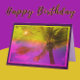 Cartão Árvore de Palma Cheia e Aniversário Roxo-Sol