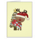 A rena de Rudy veste um boné de meia vermelho e branco do papai noel enquanto pôr presentes abaixo da árvore de Natal decorada do feriado sobre t-shirt da árvore do feriado da rena de Rudy, hoodies, canecas, cartões, etiquetas, sacolas, ímãs, chaveiro, ornamento, travesseiros, e outros roupa e presentes do feriado.
