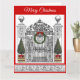 Feliz cena de Natal da entrada numa casa com uma elegante porta de ferro em formas brutas, uma coroa de Natal, colunas de tijolos e árvores torpiárias de férias. O tema arquitetônico da casa continua com uma borda rolante de damasco ornamental e listras vermelhas no fundo. Festivo, moderno, clássico e elegante para o feriado. O Feliz Natal pode ser mudado para Feliz Feriados ou qualquer texto. Uma mensagem de Natal de alegria está na dentro. Mantenha, altere ou exclua o texto do dentro, se desejar, ou adicione seu nome de família pré-impresso na parte inferior (para mover ou centralizar seu nome, basta clicar no texto e arrastar para uma área de posicionamento.)Opções do produto - parece melhor em semirbrilho e ajustado apenas as opções de tamanho pequeno e grande - melhor em grande para a apresentação.