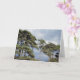 Fotografia paisagística de árvores altas em frente a um céu azul. O cartão é vazio da sua própria mensagem.