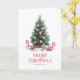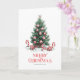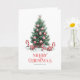 Árvore de Natal com canas doces e tipografia vermelha de Feliz Natal, cartão de saudação personalizável.
