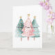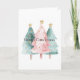 Cartão Árvores de Natal Verdes Rosa, Douradas Estrelas