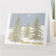 Um familiar, Cartões de natal, foi digitalmente editado, para criar este desenho gráfico, de ouro guilhotinado, árvores, agrupadas, sobre uma neve, pano de fundo com brilho, Simbólico, Estrela Sagrada, contra um céu azul ardósio.