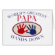 Design do t-shirt da papá do nosso mundo o grande é certo deleitar a papá! As características de design um pares de handprints em vermelho e no azul fariam o presente perfeito para sua papá especial. Disponível em camisetas, em camisas, em aventais, em sacolas, em canecas & em mais.