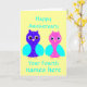 Casal bonito da coruja. Adicione o nome à parte dianteira do cartão do aniversário, o número da mudança de anos, e toda a mensagem e nomes extra para dentro. Um par de corujas cor-de-rosa e azuis bonitos. Quarto mostrado aqui.