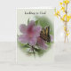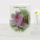 Uma borboleta magnífica repousa graciosamente sobre uma delicada flor rosa, suas cores vibrantes simbolizando esperança e renovação. Acima da imagem, as palavras "Olhando para Deus" são escritas, convidando o receptor a encontrar consolo e orientação na presença divina. Dentro na página da esquerda, uma citação significativa de Corrie ten Boom nos lembra de virar nosso olhar em direção a Deus para um verdadeiro descanso e paz, encorajando uma confiança mais profunda em Seu amor e sabedoria inabaláveis. Dentro na página direita, há uma mensagem personalizada, dirigida ao destinatário pelo nome, que oferece palavras de encorajamento e apoio. A mensagem enfatiza a importância de confiar nas preferencialmentes de força de Deus do que confiar apenas em nós, reconhecendo a sua capacidade de fornecer a ajuda e a orientação de que necessitamos em tempos de incerteza ou dificuldade. Esta mensagem pode ser mais personalizada ou alargada para se adequar aos sentimentos do remetente e à situação do destinatário.