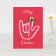A mão diz "Eu te amo" na American Sign Language (ASL). Há um círculo de holly ao redor do dedo indicador como um toque de Natal divertido. Dentro, você pode editar a saudação conforme desejar para o(s) destinatário(s). E, em seguida, inclua seu nome de assinatura ou exclua para ter vazio para assinatura manual. Desenhado por Sheila Cicchi, Brownielocks.com, Todos os Direitos Reservados.