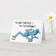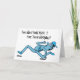 Um homem de desenho animado azul com seu boné de beisebol em sentido inverso decide bater um retiro apressado. Que grande presente, está brincando comigo...