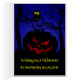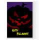 Uma abóbora assustadora com uma coruja em uma árvore acima. Um fundo azul noturno azul moderno sobre o fundo do céu. Muito divertido e assustador design para o seu cartão de saudação do Dia das Bruxas.