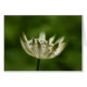 Uma bela astrantia branca e verde acendeu-se de trás para a linda luz do sol de verão.