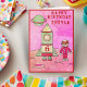 Cartão Astronauta Menina Lua no Espaço Feliz Aniversário
