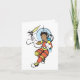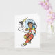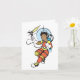 Uma astronauta menina de terno segurando um foguete. Este design parece realmente eficaz com este Cartão de Saudação