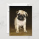 Um filhote de cachorro do pug em uma superfície da madeira do vintage.