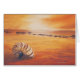As matiz mornas, douradas indicam que o sol da noite se está ajustando. Sem nenhuma única pessoa, há somente um escudo gigante deixado na praia, como se está escutando o sussurro das marés. Moldando uma sombra longa, o escudo indica a aproximação da noite e a solidão da mente. Uma onda das marés bateu a costa, quebrando o silêncio e a calma da imagem inteira. A central da imagem, um raio de luz solar que passa com o horizonte, sugerindo a está indo terminar o dia. As nuvens peludos de flutuação dão a esta imagem uma atmosfera mais solitário.