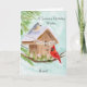 This hand-painted watercolor features a charming birdhouse adorned with a Happy Birthday banner, as a tufted titmouse and a cardinal stop by on a crisp January winter day. Soft seasonal details and gentle colors create a warm, thoughtful scene, making it a lovely birthday piece for Aunt who celebrates in January.