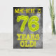 A frente deste misterioso design de cartões de aniversário personalizados, de aparência misteriosa, mostra a mensagem "76 ANOS DE IDADE!" com personagens e dígitos que têm uma aparência estranha e brilhante inspirada em uma cinza assustadora, com um padrão de fundo inspirado em neblina. A frente também apresenta um nome de destinatário editável. O dentro apresenta uma mensagem de saudação de aniversário editável. Um cartão de saudação de aniversário personalizado como este pode ser usado para enviar uma mensagem de saudação de aniversário a alguém que comemora seu 76º aniversário. [~Z0000365]