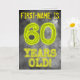 A frente desta misteriosa design de cartões de aniversário personalizados, com aparência, mostra a mensagem "60 ANOS DE IDADE!" com personagens e dígitos com um olhar assustador e brilhante inspirado em uma cinza sinistra, num padrão de fundo inspirado em neblina. A frente também apresenta um nome de destinatário personalizado. O dentro apresenta uma mensagem de saudação de aniversário personalizável. Um cartão de saudação de aniversário personalizado como este pode ser uma maneira especial de enviar uma mensagem de saudação de aniversário a alguém que comemora seu 60º aniversário. [~Z0000365]