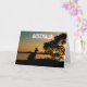 Um belo cartão postal com uma linda imagem de pôr do sol, tirado numa aventura 4WD na popular ilha Bribie, apresentando (o esboço) um canguru, uma árvore e as famosas Montanhas da Casa de Vidro em Queensland, Austrália. O espetacular pôr do sol do ouro e o seu reflexo na água dão a cor do excelente da imagem. Um cartão único que impressionará o destinatário. Mostre a todos o quão incrível é o seu tempo em Baixo.