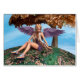 Renderização digital 3D de um belo anjo de outono sentado debaixo da árvore
